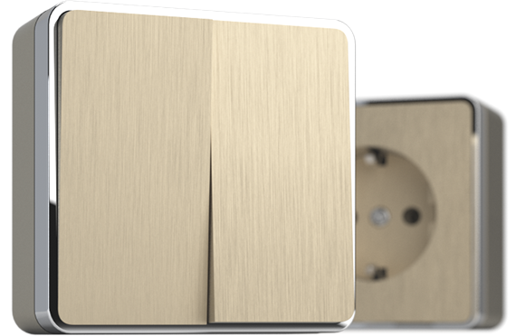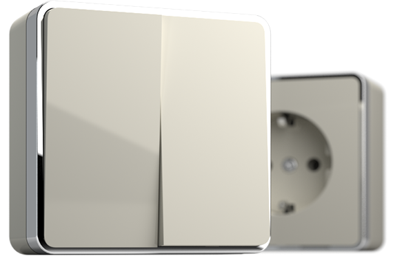 Gallant Классические цвета и строгие формы серииGallant — простое решение для современногоинтерьера. Уникальный дизайн Строгие линии механизмов подчеркнуты хромированной декоративной вставкой. Простота монтажа Механизмы легко устанавливаются без дополнительных этапов по монтажу подрозетника. Ударопрочный поликарбонат Корпус устойчив к механическим повреждениям и не меняет цвет под воздействием ультрафиолетовых лучей. Накладная серия Gallant 6 цветовых решений Серебро Белый Слоновая кость Шампань рифленый Графит рифленый Черный хром